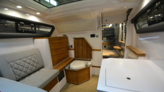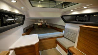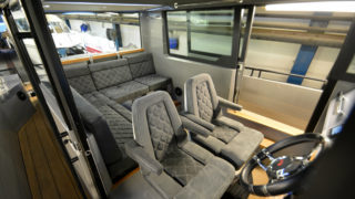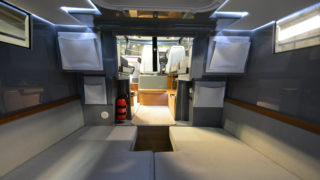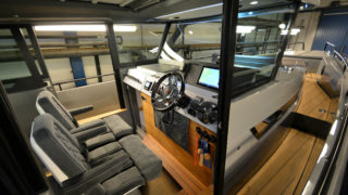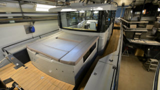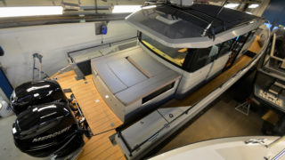 En mycket fin Axopar 37 AC R-line från 2016. En välplanerad hyttbåt med stora sociala ytor. Denna båt sticker verkligen ut från mängden med sin grå gelcoat.