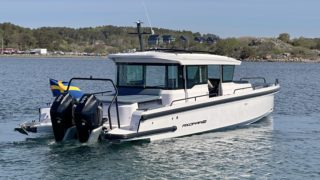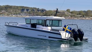 Mycket fint exemplar av denna Cross Cabin modell från Finska Axopar. Endast 40 gångtimmar och redo för sommarens äventyr! OBS. Kontakta oss för visning då båten inte ligger på vår marina.