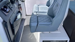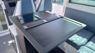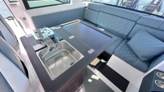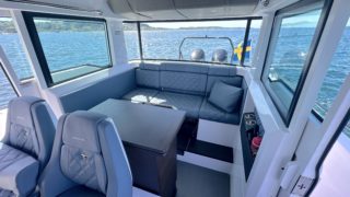 Vitt skrov, Öppningsbart canvastak, Handlaminerat skrov i vinylester, Badplattform, Badstege, Ställbar ratt, 12V uttag, Soffa på fördäck, 2x sväng- och skjutbara sportstolar med uppfällbara lårstöd, L-formad soffa i kabinen, Huvudströmbrytare med separata brytare och säkringar, Automatsäkringspanel, LED lanternor, 2x Elektriska länspumpar, Elektrisk septiktankstömning, Vattentät USB laddare, LED spot takbelysning, Elektrisk toalett med inbyggd septiktank, Manuell länspump, Låsögla klass III, Trimplan med joystick, Dynor till soffa på fördäck, Hamnkapell.