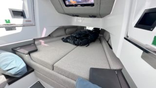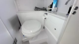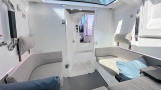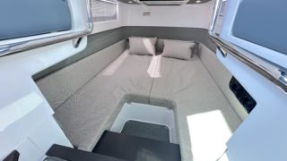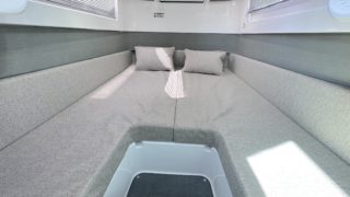I förpiken finns sovplats för två personer, toalett och duschmöjlighet. Två kojplatser i akterkabinen och gott om förvaringsutrymmen i hela båten.