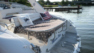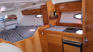 Akterkapell, ankarspel för, bogpropeller, bottenmålad, bäddsats, kylskåp, landström, Septi med däckstömning, solbädd på fördäck, stereo, teak på badbrygga, gasolspis, trimplan