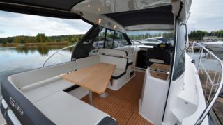 Utrustad med: ankarspel i aktern och fören, delta ankare 16kg, trimplan, bogpropeller med eget batteri, gardiner/persienner i salongen och bägge kabiner, kylskåp 65l, dusch på toaletten, soldyna fördäck, eltoalett med septiktank, belysningspaket ute och inne, flexiteek, dynor med memoryfoam (lyx), extra stor badplattform, fusion stereopaket, Simrad NSS9 plotter, Wifi givare, ekolod, Vhf, Ais, cerangrill i sittbrunen, kapell sittbrunnen, tv-kablage, inverter 2000W, peke med stege, efoy bränslecell och större vv-beredare 50 liter.