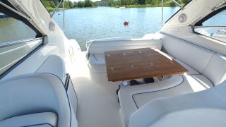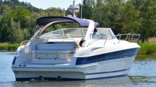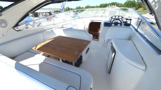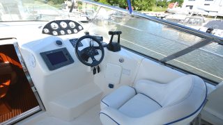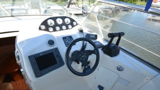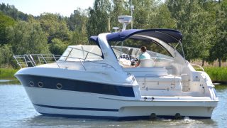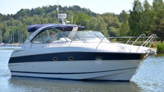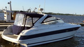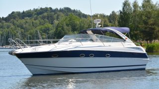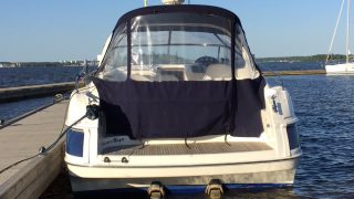Utrustad med: Blå-vita skrovsidor, bottenmålning, teak badbrygga, helkapell (nytt), bogpropeller, ankarspel i fören, Raymarine plotter, radar, autopilot, vhf, cd-stereo med 4 högtalare, 2 x kylskåp, micro, gasolspis, varmvattensberedare, sötvattensystem, dusch ute och inne, toalett med septiktank, landström med laddare, batteribank (nytt), 2 x bord, ställbar ratt, tv, tv-antenn, trimplan.