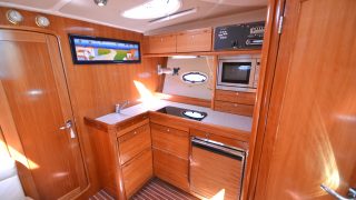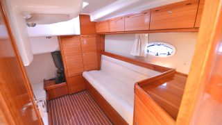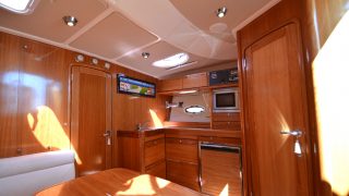 Båten har två separata hytter med varsina dubbelsängar, stor toalett med duschkabin, kök med dubbla hoar, spis, micro, och stort bord med soffa. Rymlig sittbrunn med teakbord och stor u-soffa för många sittplatser. Längst akterut solbädd med mkt förvaring under.
