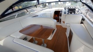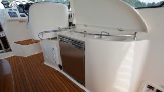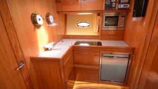 Utrustad med: bogpropeller, häckpropeller, ankarspel i fören, ankarspel i aktern, Raymarine 12 tums plotter med radar, vhf, autopilot, trimplan, 2 kylskåp, spis, varmvattensberedare, microvågsugn, dieselvärmare, gångvärme, stereo, fullteak, dävertar, bäddmadrasser, eltoalett, duschkabin, tv, tv-antenn, durkbelysning, sökljus mm.