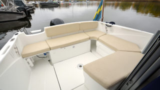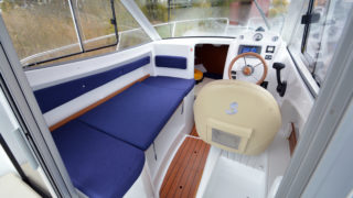 Utrustad med: Webasto värmare, ankarspel i aktern med fjärrkontroll, Garmin 720 plotter med ekolod, radar, sjökort, stereo, trimplan, tryckvatten, gasolspis, kylskåp, bäddbar salong/bord, akterdäck med bord/soldäck, 2 x vindrutetorkare, peke i fören med lampor under, landström med laddare.