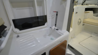 toalett med septiktank, gasolkök, taklucka, tryckvatten, gardiner, dubbla batterier, landström, laddare, inbyggda spöhållare, bord till akterdäck samt kabin, bottenmålning, trimplan, Webasto värmare, Garmin plotter.