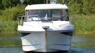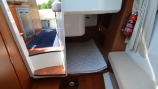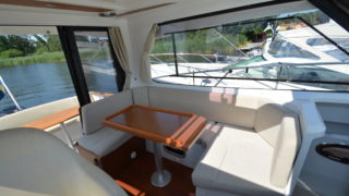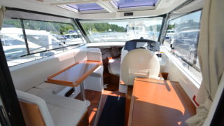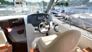 Utrustad med: Bogpropeller, värmare, Garmin plotter, gasolspis, varmvatten, peke i fören, stereo, bottenmålning, ankarspel i både för och akter (fjärrkontroll till akterspelet), 2 x vindrutetorkare, trimplan, kylskåp.