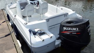 Motoriserad med en Suzuki 200 från 2016, nya modellen med elektroniskt reglage, digitalt multifunktionsinstrument, key less, rostfri stålpropeller, endast 70 gångtimmar. Garanti tom 2023 på motor.