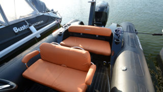 Utrustad med: Black edition, Raymarine plotter (ES98) med sjökort samt ekolod, Fusion stereo med 2 stora högtalare, dynor (orange), snygg och bekväm durk (seadeck), badstege, kapellöverdrag, självläns, länspump, securmark.