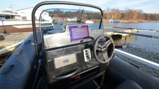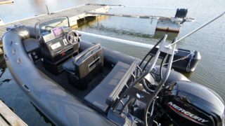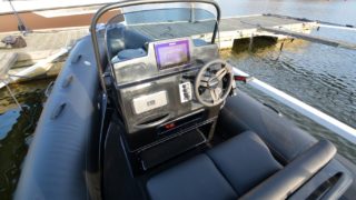 Heavy-Duty ponton i svart, Badstege, Dyna fram, Konsol-/sätesöverdrag, Motorlås, Targabåge, Lanternor, SeaDeck, Bottenmålning, Simrad GO7 inkl sjökort, Tampar.