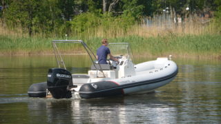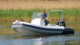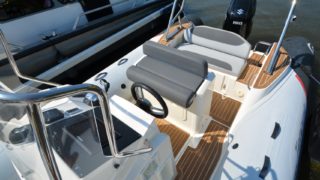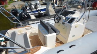 Utrustad med: Hypalontuber, dynor Silvertex beige, flexiteek durkar, soldäck i fören, seastar hydraulstyrning, plattform i fören med knapar, pulpetöverdrag, länspump, badstege, fast tank 220l, bord, kompass Extrautrustad med: Simrad GO9 plotter med sjökort, vattenskidstolpe, motorlås.