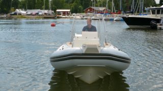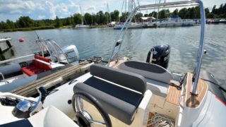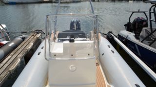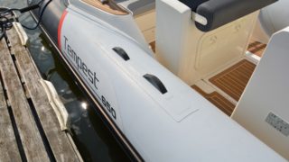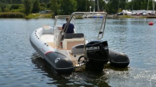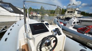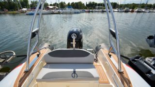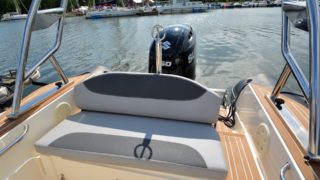 Standardutrustad med: Hypalontuber, dynor Silvertex beige, flexiteek durkar, soldäck i fören, seastar hydraulstyrning, plattform i fören med knapar, pulpetöverdrag, länspump, badstege, fast tank 220l, bord, kompass Extrautrustad med: Simrad GO9 plotter med sjökort, vattenskidstolpe, motorlås.