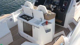Capellis flaggskepp! Här får du 44 fot som verkligen väcker uppmärksamhet. Du rör dig enkelt runt på däck och det finns gott om både sitt- och solplatser. Det fina v-skrovet ger mycket bra sjöegenskaper och med 3x350hk en toppfart på över 50 knop.