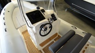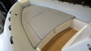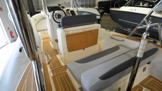 Handtag på tuber, dynor Silver/antracite, flexiteek, soldäck i fören, rostfri targabåge, hydraulstyrning, plattform i fören med knapar, pulpetöverdrag, luftpump, polerkit, länspump, stege, bord, kompass