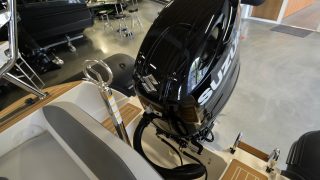 Motoriserad med Suzukis senaste 150 hk med elektroniskt reglage, digitalt multifunktionsinstrument, key less startsystem, rostfri stålpropeller, fåtal gångtimmar.