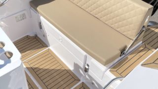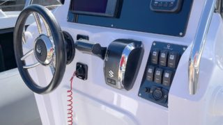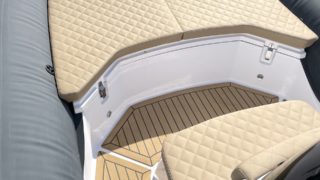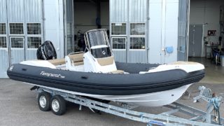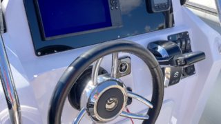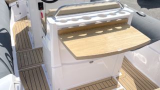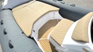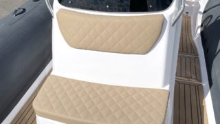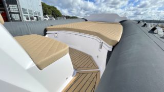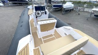 Bord, fast bränsletank 220L, dynor till förarsoffa och aktersoffa, elektrisk luftpump, handtag på tuber, kompass, länspump, plattform i fören med knapar, pulpetoverdrag, Seastar hydraulstyrning, Soldäck i fören, Flexeteek durk, badstege och däckbelysning LED.