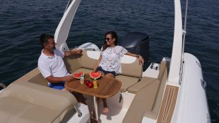 Flexiteek är standard, vilket lyfter båtens utseende och gör däcket skönt att gå på med bara fötter. Alla RIB-båtar från Capelli har tuber i Hypalon som är mer beständigt mot mekanisk nötning och inverkan från väder och vind än andra förekommande material.