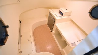 Planerad med stort soldäck i fören, sittgrupp i aktern med två soffor och bord, kabi med med bra stuvutrymme och toalett.