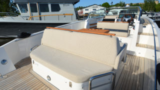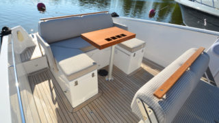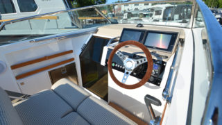 Vitt skrov, Svart bottenfärg, Kapell, Gångvärme och defroster från motor, Bogpropeller, Stålpropellrar i rostfritt, Stå-stolar med uppfällbara sittdynor, 2st batterier, Kompass, Pentrypaket inkl kylskåp, Toalett, med septictank, Bord, 2x Garmin plotter med Volvopenta glasscockpit skärm, Fusion stereo med Ipod connection, Tripcounter Volvo Penta, Undervattensbelysning, Landström med laddare, Zipwake trimplan, Pepita dynor.