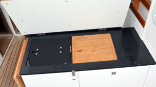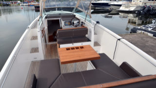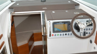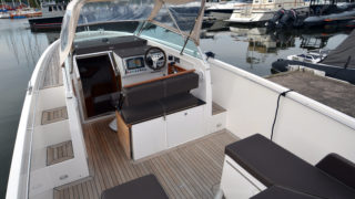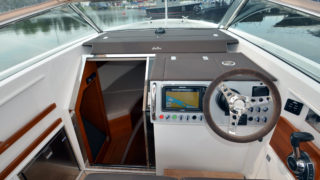 Utrustad med: fullteak, bogpropeller, bottenmålning, Raymarine 9 tums plotter, hamnkapell, körkapell, gångvärmare, stereo, kylskåp, sötvatten, bord som enkelt bäddas ner till solbädd, toalett med diskho, gasolspis, trimplan, elektroniskt reglage, digitalt multifunktionsinstrument, durkbelysning, brandsläckningssystem i motorrummet, Delta porslin, verktygslåda