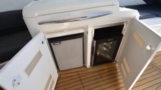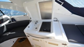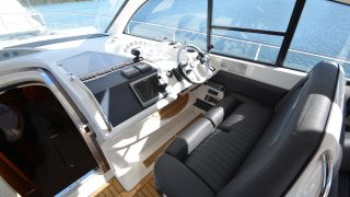 Ombonad stor sittbrunn med stora soffarrangemang med wetbar bestående av diskho, grill, kylskåp samt vinkyl. Bra förarmiljö med ny Raymarine plotter.