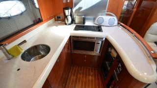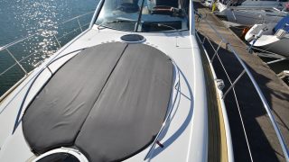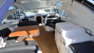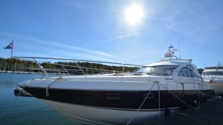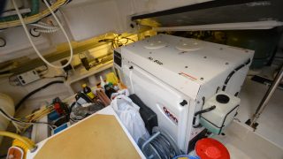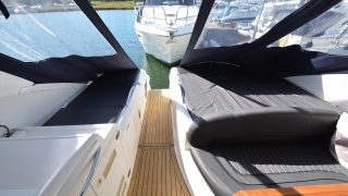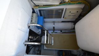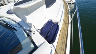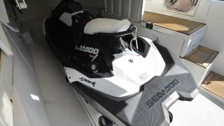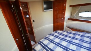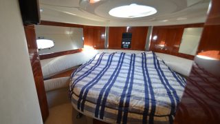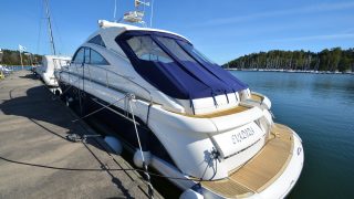 Utrustad med: ankarspel i fören, stort elmanövrerat tak, raymarine plotter, radar, autopilot, bogpropeller, fullteak, akterkapell (nytt), dynor i sittbrunn (nytt) jollegarage i aktern som rymmer ribbåt alt vattenskoter (ingår ej på bild), webasto dieselvärmare, Aircondition, Onan elverk, landgång i aktern utfällbar, varmvattensystem, eltoaletter, trimplan, elektrisk spishäll, micro, sökarljus, soldyna fram.