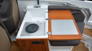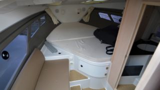 Utrustad med: Bogpropeller, trimplan, stor Garmin GPS med ekolod och sjökort, landström Kylbox, Kokplatta wallas, värmare Wallas ,diskho Toalett med septitank Ståkapell Hamnkapell Stereo Fusion med bluetooth Tryckvatten Hydraliskt höj-och sänkbart bord med solmadrass LED-belysning, motorlås och Securmark.