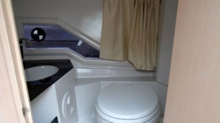 Rymlig sittbrunn med stor soffa och elektriskt höj/sänkbart bord. Rymlig ruff med separat toalett(elektrisk) och stickkoj.