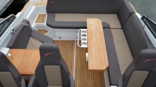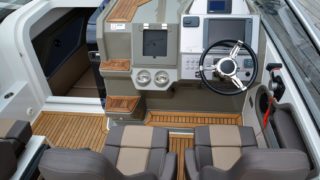 Båten har en Yamaha 300 hk motor vilket ger en toppfart på ca 40kn och en bekväm marschfart på 30kn.