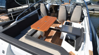Nya Finnmaster T serien representerar en perfekt kombination av toppdesign, praktiska detaljer och ett sportigt utseende. Förens ledljus samt de strömlinjeformade skrov och takfönstren är exempel på fräscht nytänkade. Runt det stiliga bordet i sittbrunnen finns rikligt med sittplatser för familj och vänner. Men hjälp av en tilläggsdyna kan sittplatsen formas till ett stort soldäck. I den rymliga kabinen finns den sovplats för 4 st personer i två separata dubbelkojer som allt är klara att använda utan extra arrangemang. Även solbädden kan naturligtvis användas som en extra bädd för 2 st Toalett och handfat finns i ett separat toalettutrymme i kabinen.