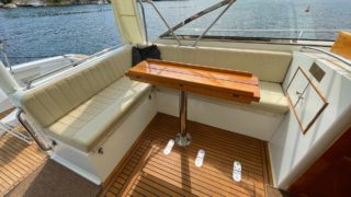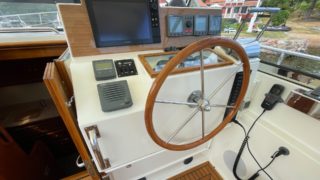 Bogpropeller med eget AGM batteri, Ankarspel i fören med rostfritt ankare och kätting samt räkneverk för kätting, ankarspel i aktern med rostfritt ankare och blyad tamp, ekolod, vhf, autopilot, fullteak, elverk ONAN 4kw (endast 180 h), trimplan, eltoalett, komplett kök med mikrovågsugn, spis med 3 plattor, ugn, fläkt, corian bänkskiva, komplett porslin och glas samt kylskåp med frys, stort portabelt kylskåp för dryck, varmvattensberedare (40l) dusch inne och ute (360 liter färskvatten), teakbadbrygga med stege, Eberspächer 5kw värmare (renoverad 2022), torkare med spolfunktion, sjövattensdusch på fördäck till ankarspel, bäddmaddrasser, bäddbar salong, landström med laddare.