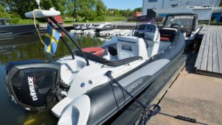 En mycket fin och väldesignad rib med mycket stuvutrymmen och smarta lösningar. En av få rib båtar i denna storleksklassen med en riktig u-soffa. Båten är godkänd för 12 personer och har riktigt bra sjöegenskaper.