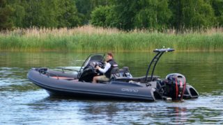 Denna Grand är av årsmodell 2020 och motoriserad med en Mercury 150 Pro XS med endast 19 gångtimmar!