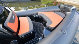 Dynor i fören, Dyna med ryggdyna för om styrpulpet, Dynor samt ryggdynor u-soffa, länspump, Fotpump, Handsfack, Huvudströmbrytare, Hydraulstyrning, Lanternor, Låsögla i fören, Mugghållare, Securmark märkning motor, Självläns, Sportratt svart, Targabåge, Mercury active trim, fusion stereo, Simrad plotter med sjökort.