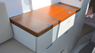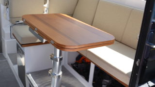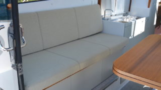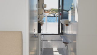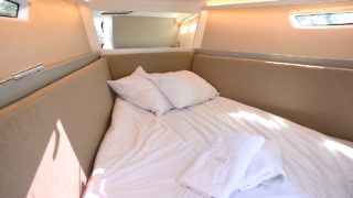 Båten är planerad med stor dubbelkoj i fören, rymlig toalett, praktiskt pentry och gott om förvaring i hela båten. Trivsam sittgrupp i salongen och stora soffor på det öppna akterdäcket, här finns gott om plats för hela familjen.