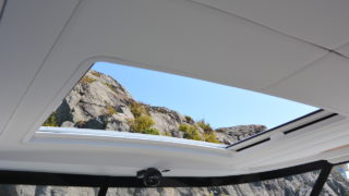 Båten har en gedigen utrustningsnivå med bland annat trimplanssystem från Humphree, autopilot och bogpropeller, navigationssystem, radar, VHF och AIS. Stereo, landström med laddare och inverter, ankarspel i aktern, durkbelysning, varmvattenberedare, backkamera, eltoalett med septiktank, öppningsbart panoramatak, elektriskt öppningsbar motorlucka, undervattensbelysning, sökarlampa, stävstege, solcellspaneler, värmare och motorvärmare, osv.