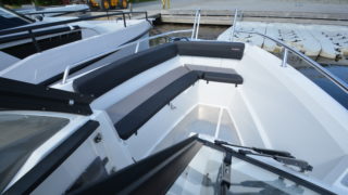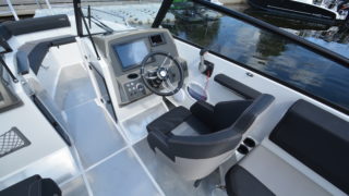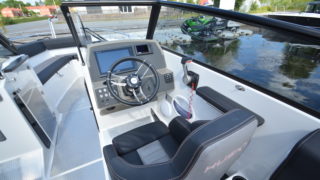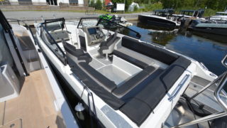 Utrustad med: trimplan, stereo med blåtand, Garmin 12 tums plotter, Yamaha digitalt multifunktionsinstrument, bogpropeller, hamnkapell, körkapell, bäddsats akterdäck för solbädd, vattenskidbåge.