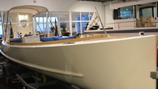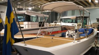 Båten står i vår utställningshall på Lidingö, välkommen.