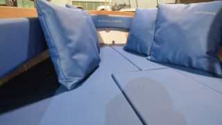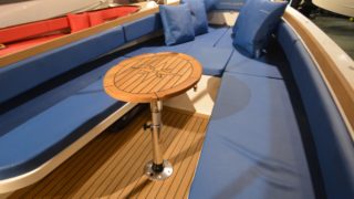 Förtöjningsutrustning, bimitopp, Flexiteak, batteriladdare, USB-uttag, pop-up knapar, stereo, kylbox, fullt dynset, snabbfäste till fendrar och hamnkapell.