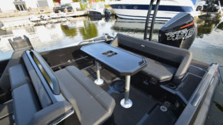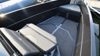 Seadek, svart gummi durk, Bord vid aktersoffan.