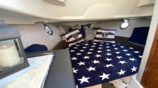 Utrustad med: Bogpropeller/ Ankarspel 2020/ Plotter Raymarine/ kök i sittbrunn/ toa med septi och sugtömning/ solmadrasser till fördäck/ stereo med högtalare i sittbrun och fördäck/ heltäckande kapell/hamnkapell