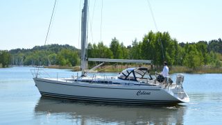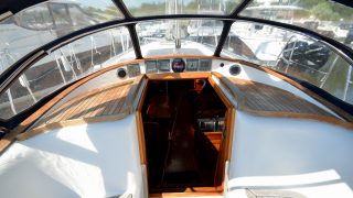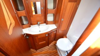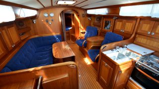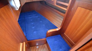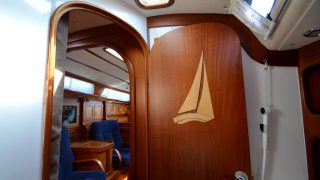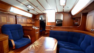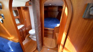 Denna båten är planerad med tre kabiner med separata garderober med gott om stuvutrymmen. Toaletten är på denna båten placerad i fören för att ge mer plats och ljus in i den generösa salongen. Alla bekvämligheter finns ombord och gör varje segling till en fröjd.