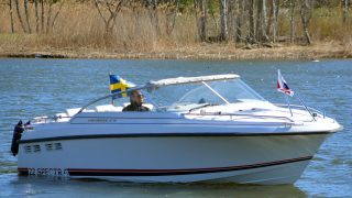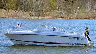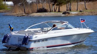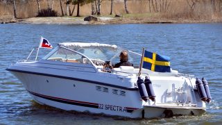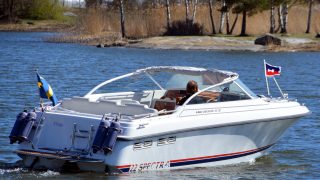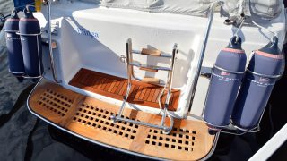 Utrustad med: bottenmålad, badbrygga i teak med badstege, bord, kompass, Garmin gps, trimplan, dynor, kapell, fendrar,
