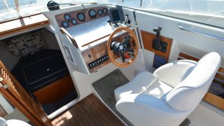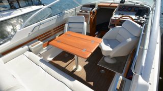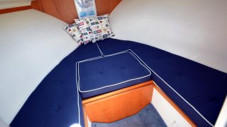 Trevlig sittbrunn med två fåtöljer som är vändbara mot ett fällbart bord, soffa i aktern omvandlas till en solbädd i aktern. Ljus förpik med övernattningsmöjlighet för två.