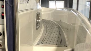 Utrustad med bland annat Plotter/GPS från Simrad NSS12″, ankarspel med fjärrkontroll, bogpropeller, ekolod, trimplan, landström, tryckvatten och varmvatten, dusch på badbryggan, spis, toalett med septiktank, gångvärme, tvådelat kapell, fullteak, peke, kompass, sökarlampa, kylskåp, vindrutetorkare, stereo (Fusion inkl. ”Nimbus Premium sound högtalare”), osv.