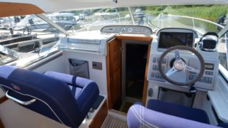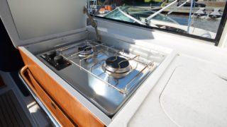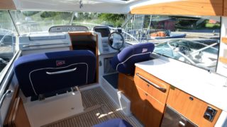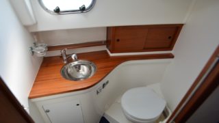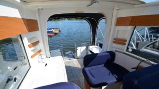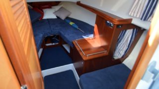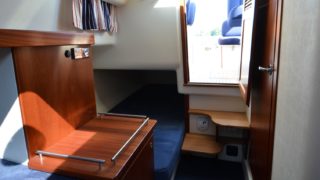 Båten är bra planerad med en öppen och luftig känsla i kabinen tack vare det smidiga kapelltaket som öppnas enkelt och smidigt de soliga dagarna. Ruffen är rymlig med förvaring och garderob samt stor stickkoj. Toalett med dusch och egen dörr.
