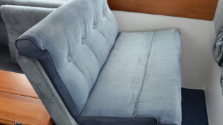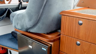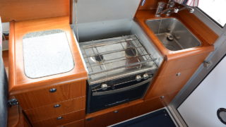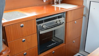 Utrustad med bland annat autopilot, värmare, bogpropeller, ankarspel med fjärrkontroll, trimplan, fjärrstyrd sökarlampa, fönsterspoling till vindrutorna, gångvärme, varmvattenberedare, tryckvatten och sjövattensystem, landström, toalett med septiktank och däckstömning, dusch på akterdäck, stereo med fyra högtalare, gasolspis och ugn, kylskåp med frysfack, kapell, bord och dynor till akterdäck, osv.