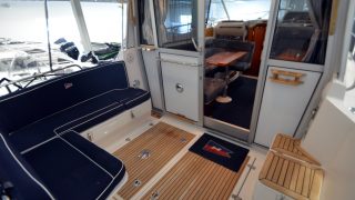 Utrustad med bla: mörkblå skrovsidor, gpsplotter Raymarine C70, ekolod 2D framseende ekolod, Raymarine radar, akterpropeller, bogpropeller, autopilot, defroster/gångvärme, dieselvärmare, varmvattensberedare, landström med laddare, ankarspel i aktern med fjärrkontroll, stora kapellet akterdäck, Stereo med bluetooth, sökarljus, teakdäck, trimplan, stävstege, vindrutekapell, förtöjningsutrustning m.m