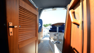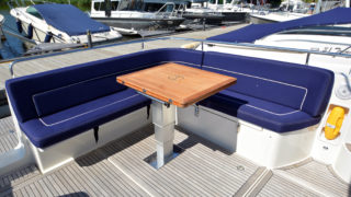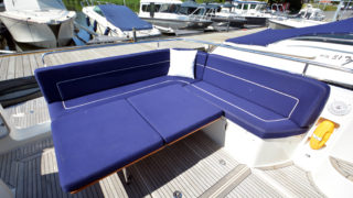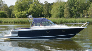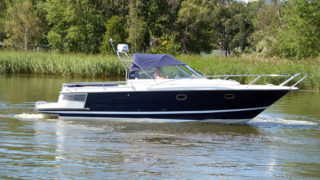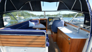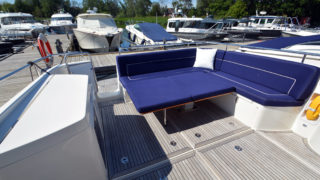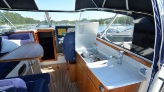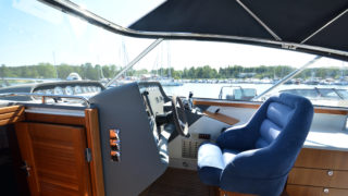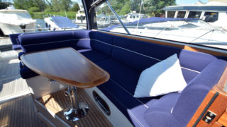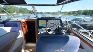 Utrustad med: Mörkblåa skrovsidor, fullteak, bogpropeller, ankarspel i aktern med fjärr, Simrad 12 tums plotter, Simrad 3g radar, stereo, dieselvärmare, gångvärme med defroster, sökarljus, durkbelysning, landström med laddare, varmvattensberedare, belysning i targabåge, gasolspis, elspis på akterdäck, wetbar, 2 x kylskåp, wc med septiktank, trevlig L-soffa på akterdäck med el sänkbart bord som görs om till solbädd, kapell, trimplan, dusch badbrygga,
